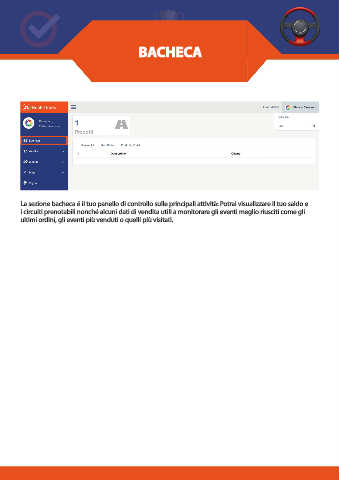 La sezione bacheca é il tuo panello di controllo sulle principali attività: Potrai visualizzare il tuo saldo e