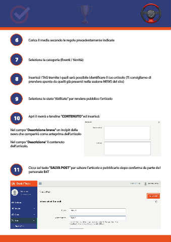 11 Cicca sul tasto “SALVA POST” per salvare l’articolo e pubblicarlo dopo conferma da parte del